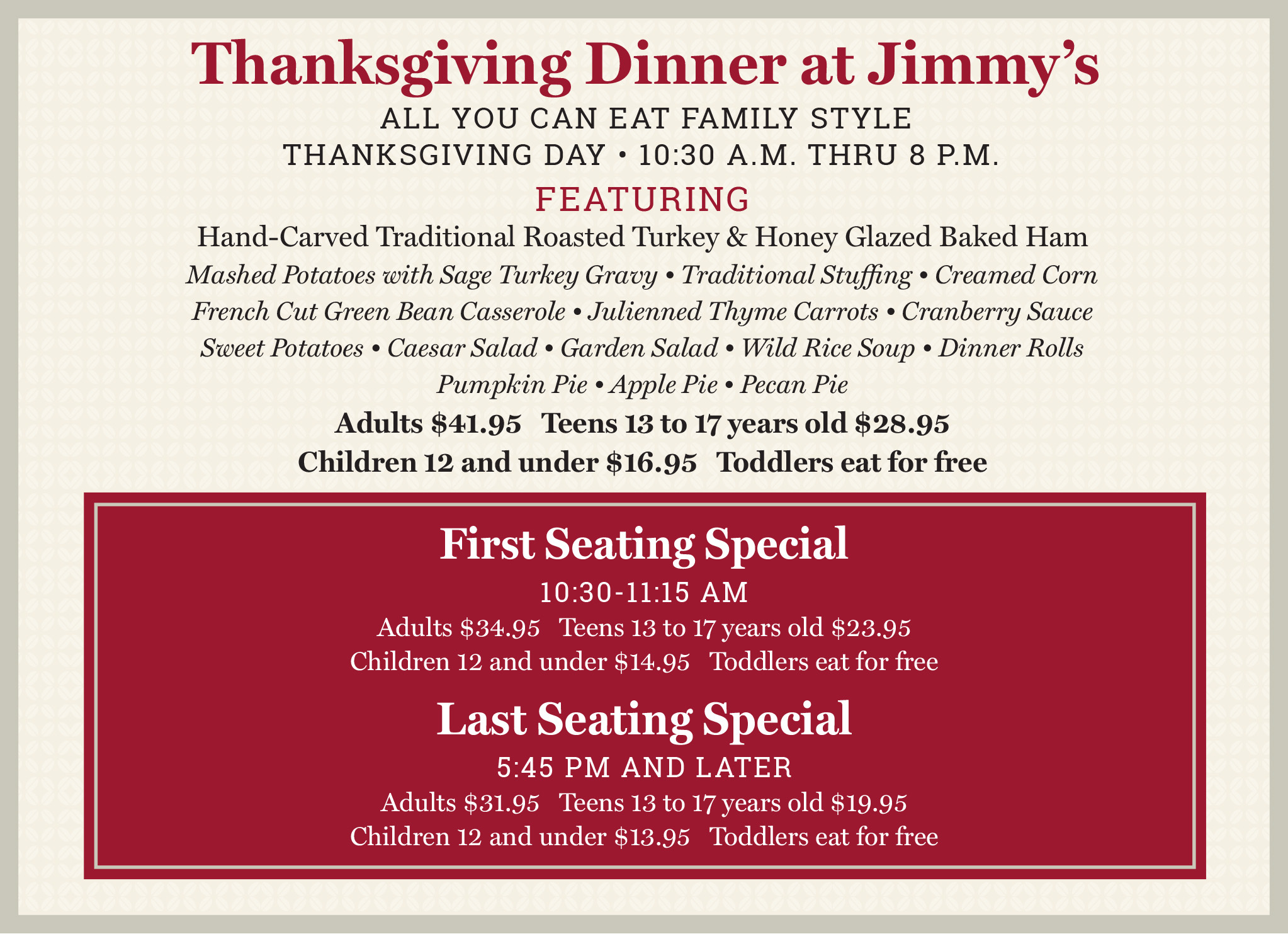 * On Thanksgiving, we invite everyone to order from the family-style menu as our standard menu will not be offered.